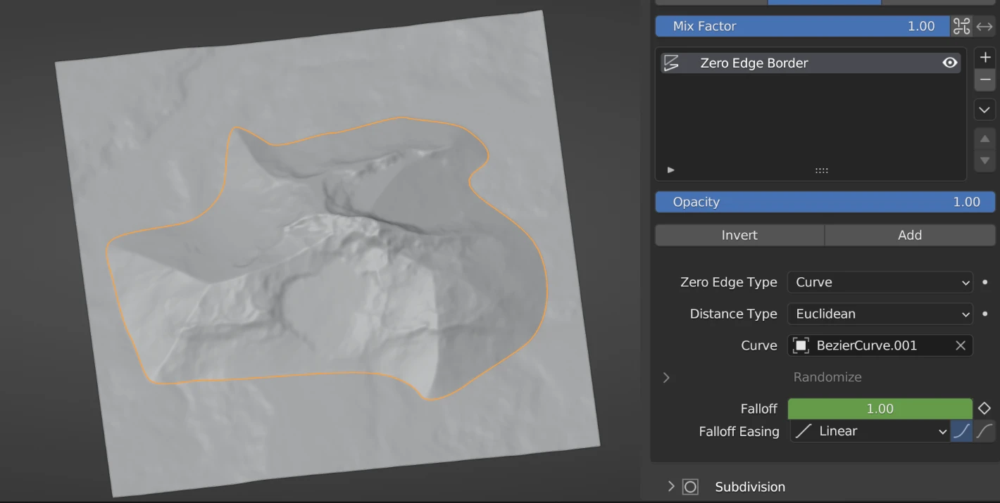 How to calculate the distance to the zero edge. Useful for things like heightmaps where you may want to use a more square like falloff. Position and Curve Edge Type Only