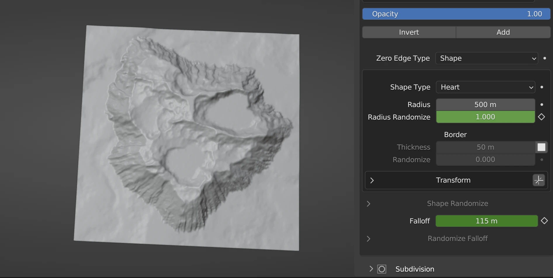 - Normal: Displace the terrain along the normals as resulted from the previous layers