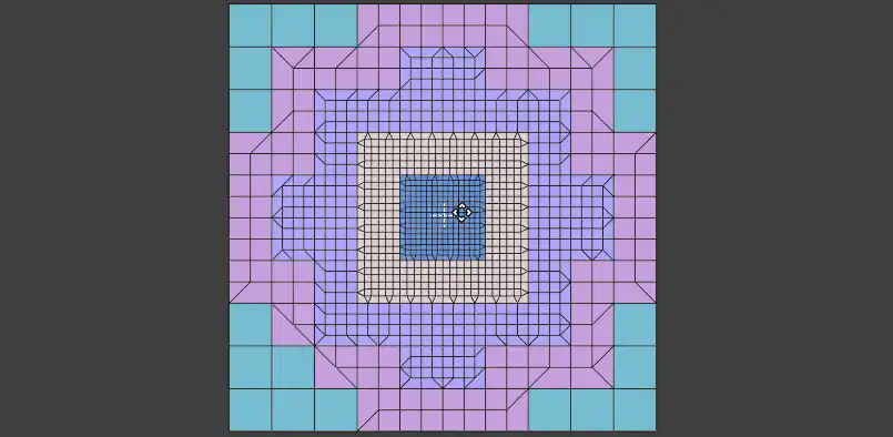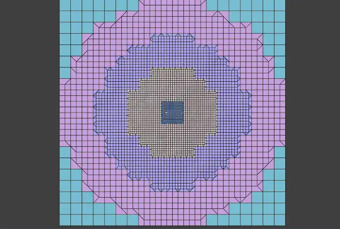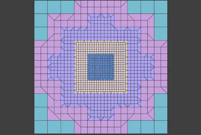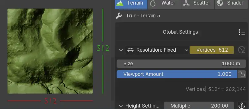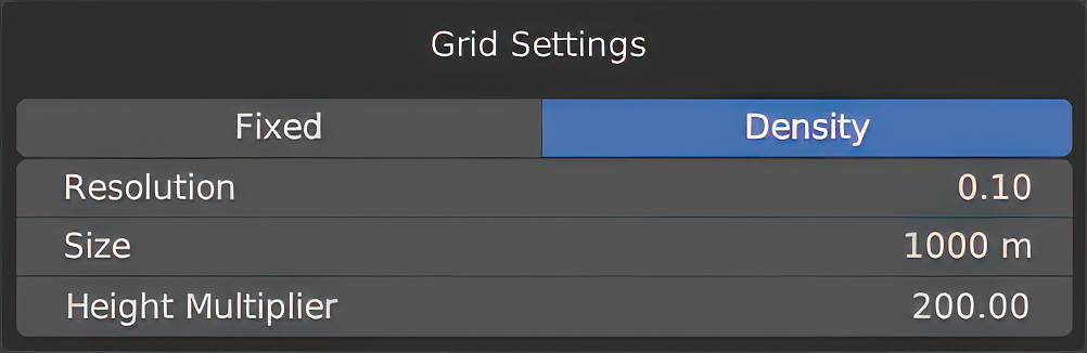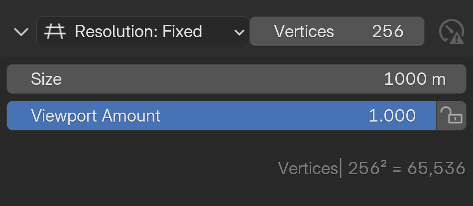 To set the grid resolution, Fixed Grid requires the user to input a specific vertex count. The default value is 256, resulting in 256x256 vertices along the X and Y coordinates of the mesh. This generates either 65,536 vertices or 65,025 faces.