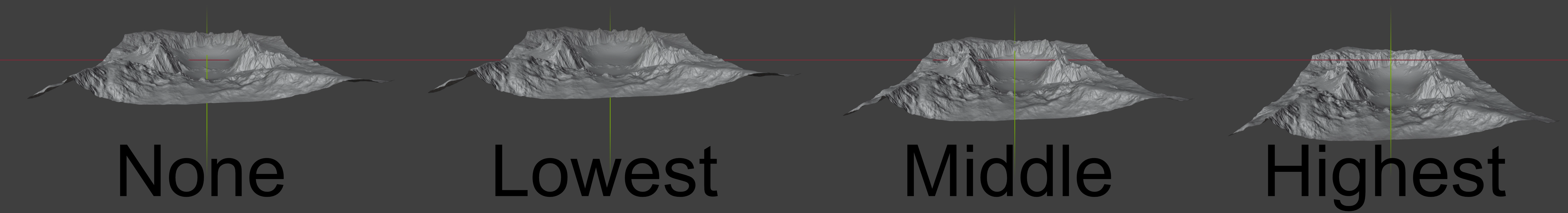 All vertices are moved in such a way that the highest point is always at sea level. Increasing heights will always stretch the entire terrain deeper below the sea level.