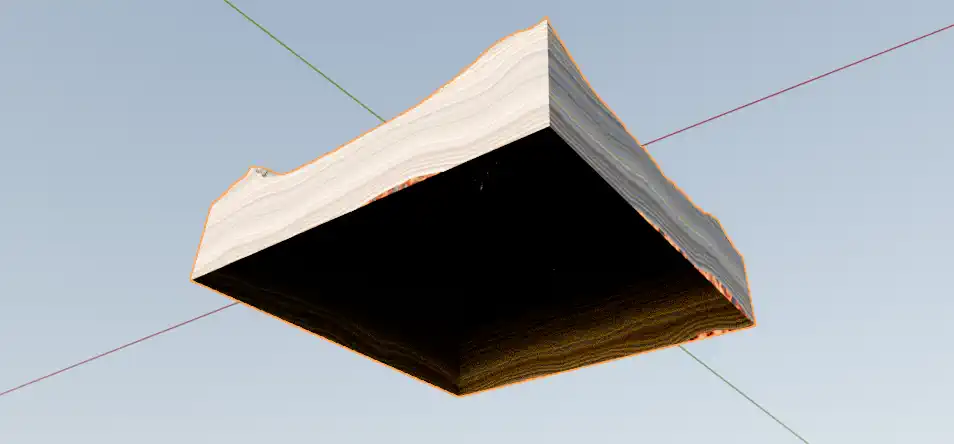 Diarama walls are shown in white while the terrain (top) is darkened showing it isn't selected.