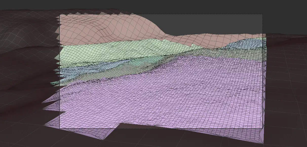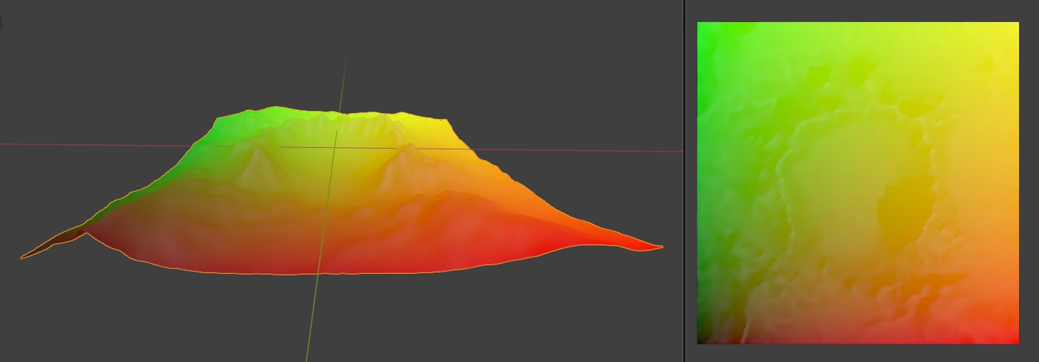 The UVs of the terrain laid out as you would from above or a normal plane unwrapped.